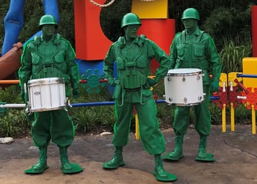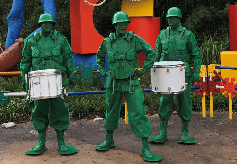 Durante el día, busca al Green Army Drum Corps en Toy Story Land. Esta talentosa banda de percusionistas seguramente mantendrá entretenidos a los Visitantes de todas las edades con sus espectáculos vibrantes y secuencias de percusión inspiradoras.