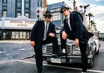 Directo desde las rudas calles de Chicago, The Blues Brothers llegan al escenario con sus característicos trajes negros, sus sombreros estilo porkpie y sus anteojos oscuros. Jake y Elwood traen su conmovedora música a Universal Studios todos los días, acompañados por su talentosa amiga Mabel y su acompañante con el saxofón, Jazz.