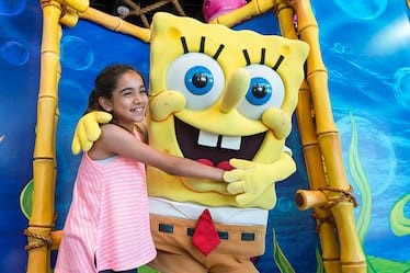 Conoce a SpongeBob SquarePants dentro su tienda burbujeante. También podrás conocer a Patrick.